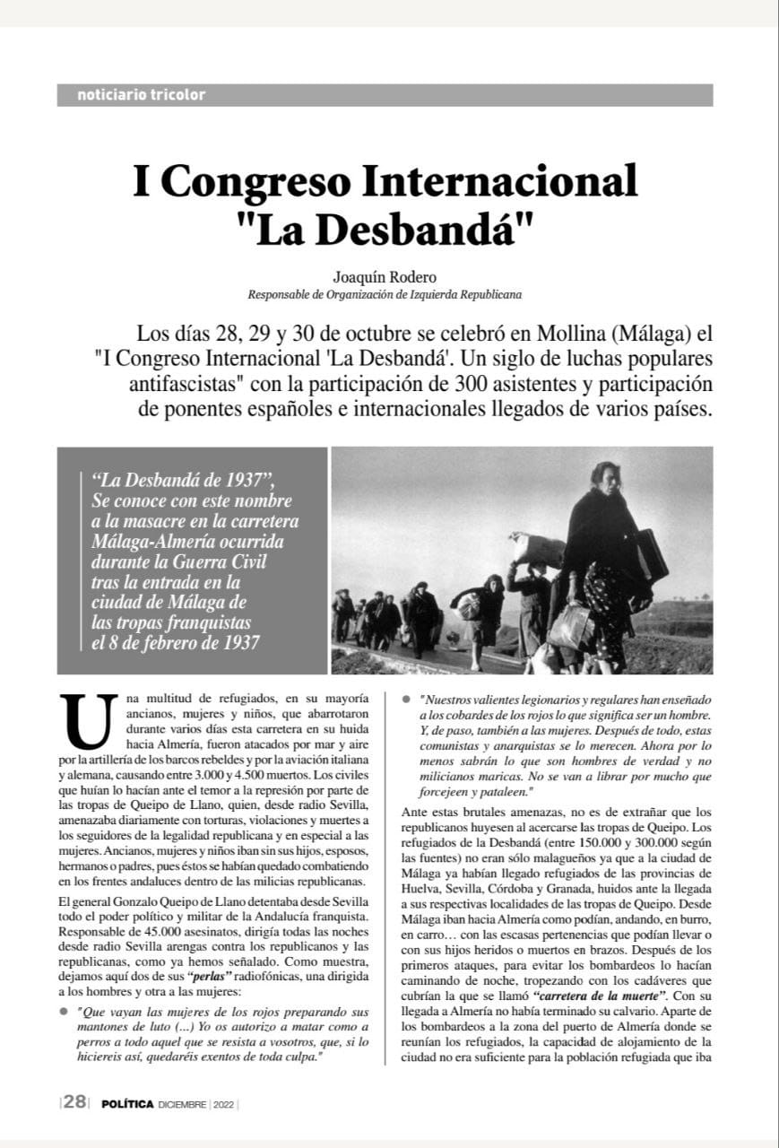 - Exhumaciones de la violencia de retaguardia franquista en la provincia de Cádiz: recorrido de una resistencia inacabada 4 de diciembre de 2022